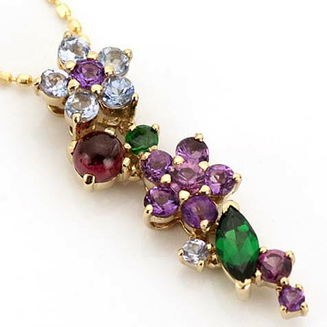 一つ一つのお花の形、葉っぱやつぼみをイメージした石枠のそれぞれが引き立つように高低差を付けて並べているので、胸元に着けた時には平面的なデザインのものよりも存在感を感じていただけます。