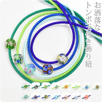無地の飾り紐に、花など素敵な模様の入ったトンボ玉が可愛いですね。