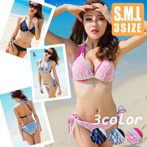 ワイヤービキニ・総レース三角ビキニ豪華4点セット(メール便不可/ホワイト/ピンク/ブラウン/白/桃/茶/S/M/Lサイズ)【激安/2014新作/水着/レディース/女性/スイムウエア/大人カワイイ/ファッション/流行/トレンド】☆
